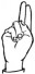 На ћирилици написано МОМЧИЛО ГРУБНИЋ састоји се из 14 слова [?]. Исписано ћириличном једноручном азбуком за глувонеме: